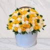 Impresionante buchón con aproximadamente 50 rosas amarillas frescas, dispuestas de manera compacta y elegante. Envuelto en papel negro mate que realza el contraste y la intensidad de las flores, este diseño transmite lujo, grandeza y alegría desbordante.