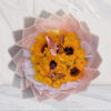 Un impresionante ramo de 30 girasoles brillantes, envuelto en un elegante papel importado. Este diseño radiante es perfecto para iluminar cualquier día y compartir alegría y optimismo en momentos especiales.
